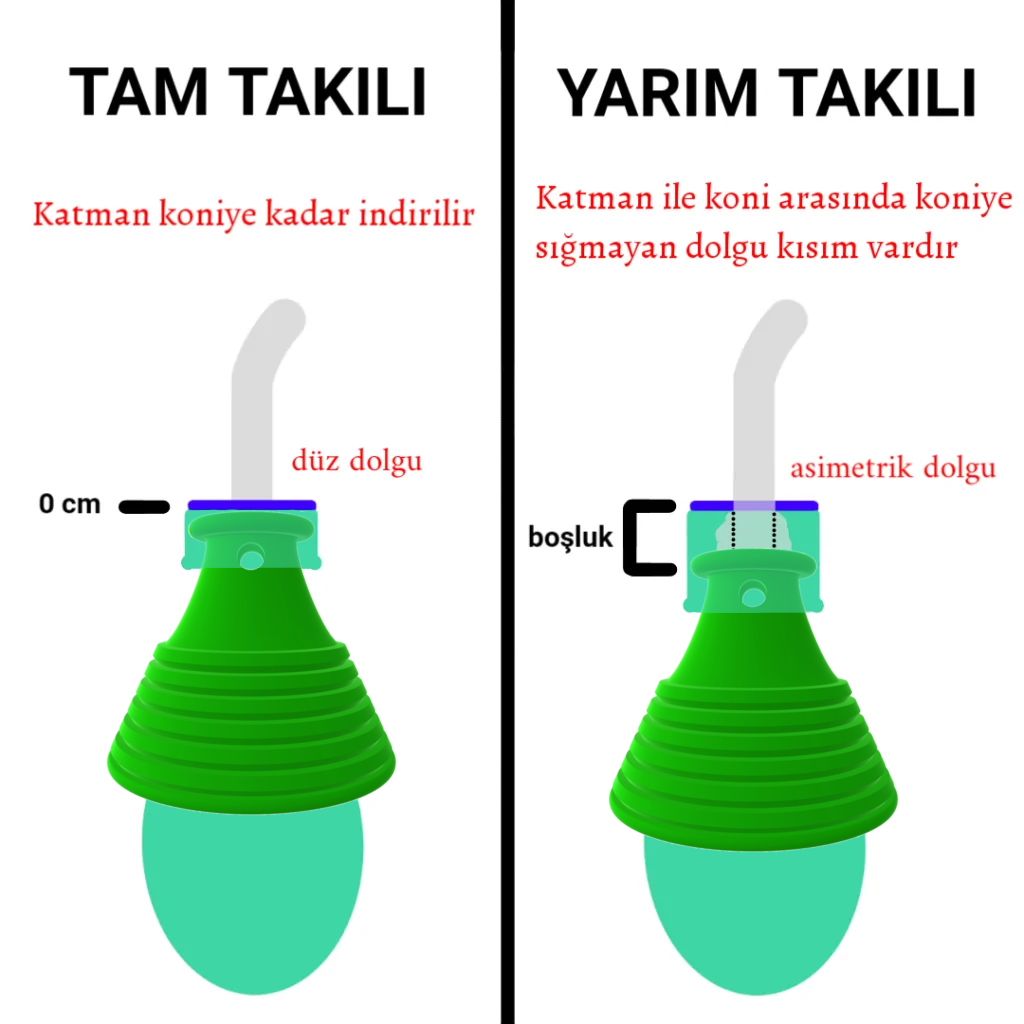 Bu durumda koniyi rahatça penise takmak için balonun içindeki havanın tamamen boşaltılması gereklidir.